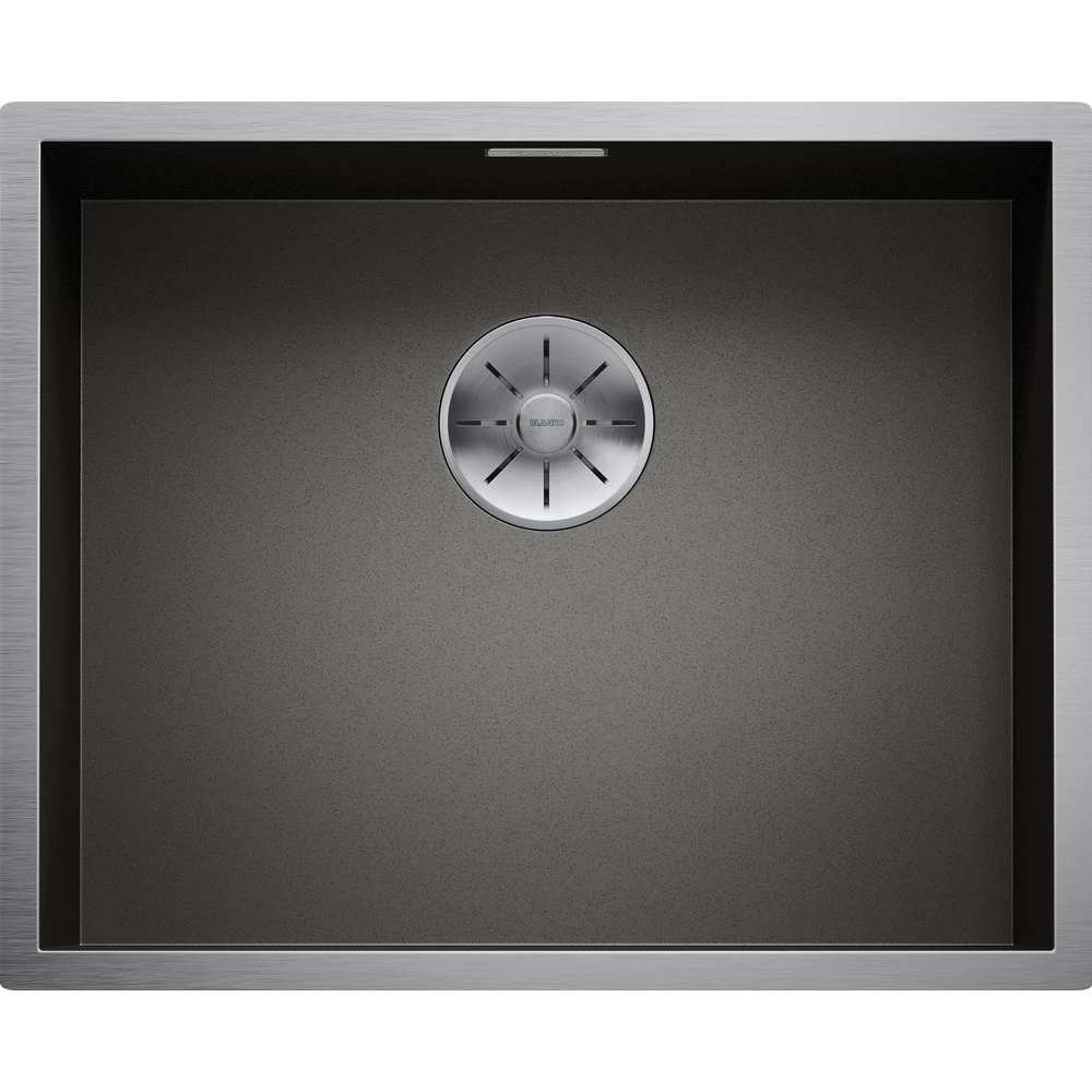 - Feltűnően derékszögű rozsdamentes acél medencék elegáns, sötétszürke felülettel.